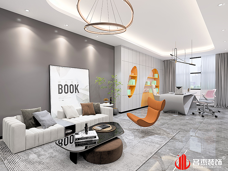 在展厅区域设计当中采用了相当吸引眼球的色彩去作为主色调,同时工业风的吊顶在色彩强烈的对比下,形成了一个非常有特色的空间。整体空间采用的是时尚潮流的风格,加上原木的元素来增加空间的自然感,感到潮流的同时,还能感受大自然带来的舒适感。