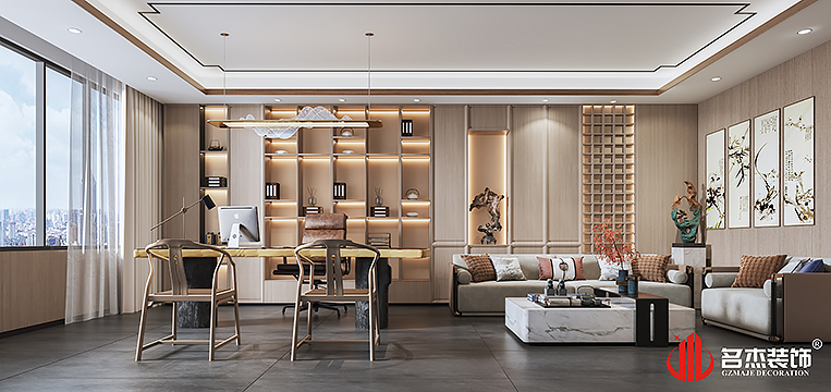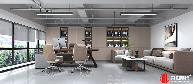 这是一家以研发、生产、销售纳米材料、环保涂料的新材料企业,设计团队根据客户需求,以一种时尚简约的风格来打造出一个符合行业标准且能够支撑起该企业未来发展的高新科技办公装修设计空间。在整个空间中加入常规的设计元素,搭配非常规的木色作为点缀色,让空间充满温馨的气息,同时还能够增加空间的设计层次感。