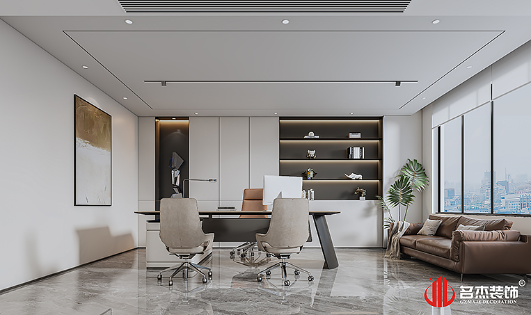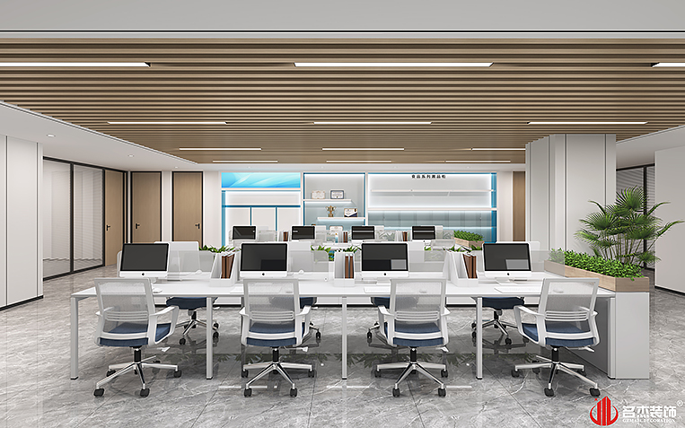前台区域利用层高的优势,搭建出一个大气且时尚的区域。在背景墙部分加入部分简约的且不简单的元素,让空间变得更加有层次感,土豪金作为空间的点缀色,也为这个前台区域增加了不少的轻奢感。大部分区域都是做了吊顶的,通过这样的方式让整体风格得到了统一,同时这样简约的吊顶也能够给空间带来不一样的层次感??占渲欣渡阕阂彩撬娲杉模芄缓芎玫母惺艿狡笠滴幕?。#工装装修#