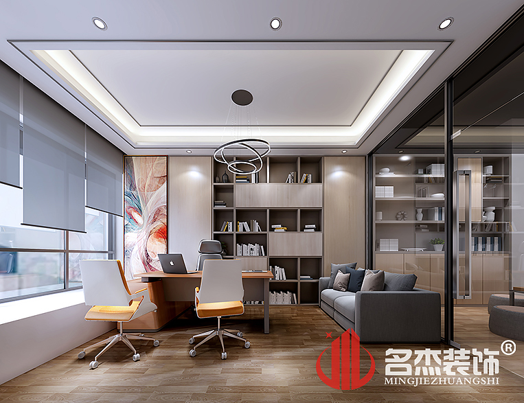 整个空间都充满了绿色环保的氛围,很好的将企业文化和企业元素加入到整体的办公室装修中,让人时刻感受到该企业的文化。绿色元素的加入,再用橙色作为点缀色,使得整个空间显得更加的有时尚感。