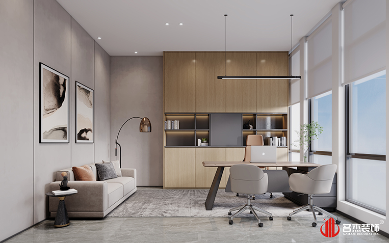 为了打造一个既时尚又具有企业氛围的空间,设计团队运用了轻奢的元素。通过精心挑选了材料和色彩,以确??占涞钠分屎褪媸识?。在重点区域,加入了土豪金的元素作为点缀,为空间增添了一丝奢华感。通过运用轻奢元素、土豪金点缀以及运用线条作为引导空间的要素,打造出一个让人印象深刻的办公装修设计空间。#广州办公室装修#
