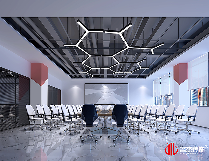 本案例是以汽车部件为主的企业,设计师通过前期的沟通和了解,通过将企业的logo颜色加入到整体的设计当中,把企业文化和品牌意识融入到整体办公室装修设计空间当中。也根据客户的要求,在前台位置设计了一个关二哥的立像作为元素,使得整体空间设计有别于外面千篇一律的设计