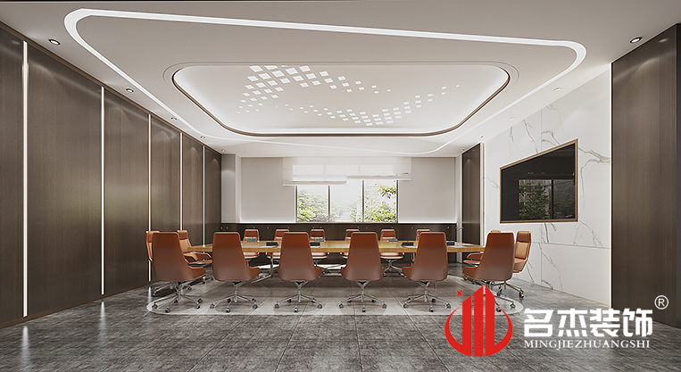 本设计案例中的企业是专舞台灯光音响设备的,设计师通过对行业的了解,以及和企业详细的沟通,了解到该企业的想法,设计出了能够展示该企业品牌的设计费方案。使用黑白灰作为设计的主基调,在其他地方也加入了点缀色来增加整体空间的设计感和时尚感。