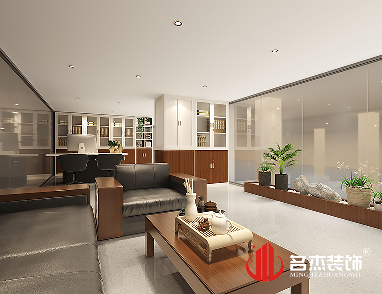 在整体办公室装修设计当中,加入的loft元素也空间变得更加有设计感的同时,还能让空间的使用率得到进一步的提高。而且加入的水池这个元素,有着如鱼得水的寓意,也意味着企业能够做的风生水起。处处体现的山水森林的元素,让自然的元素进入到办公室装修设计空间当中,简约的风格得到了自然元素的加持,变得更加有层次感。