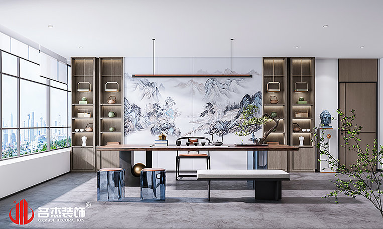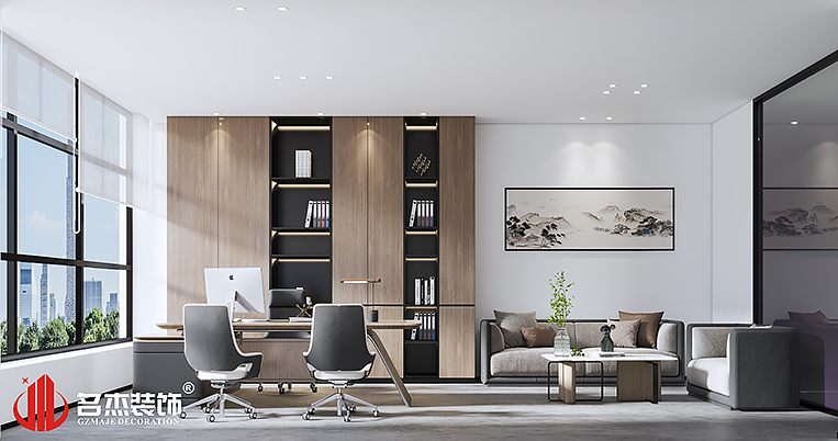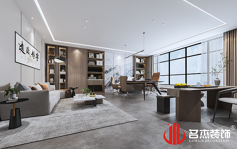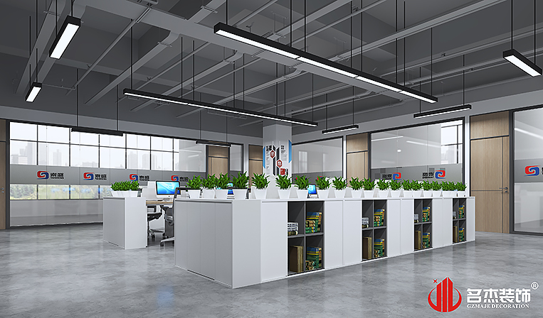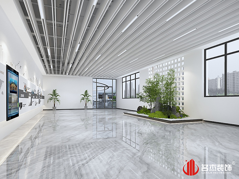 前台区域中以一种有组织的线条和弧形元素混搭的组合方式,来确??占涞亩嘌裕⑶掖丛斐鲆恢智苛业氖鄙懈校秤枇丝占涞亩捞馗鲂?。在这个办公装修设计空间当中,恰到好处地使用了铝格栅作为天花吊顶的材料,通过喷白的手法,来让空间变得更加有质感,还能突出企业的设计品味。