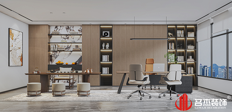 整体使用时尚简约的风格,让办公空间看起来更加简洁,同时在不同区域使用蓝色作为点缀色,给空间增添了几分科技感的同时,也让空间变得不那么单调。前台区域使用圆弧造型的吊顶,搭配弧线形的背景墙,形成一种呼应的同时,还能够增加前台空间的层次感。在办公区域使用蓝色喷漆,区别于传统的黑白灰,让空间更加具有辨识度。