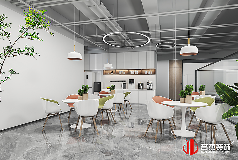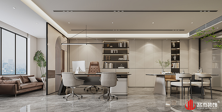 整个办公装修设计空间采用时尚简约的风格,搭配简约的线条灯以及使用亮眼的颜色来进行点缀,让空间简约而不简单。前台区域使用弧形背景墙,加入弧线型元素来增加空间的设计感。而在展厅区域则使用蓝色作为点缀色,搭配方正且有造型的天花,让空间有着浓郁的科技感。#广州办公室装修设计#