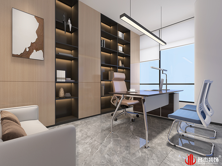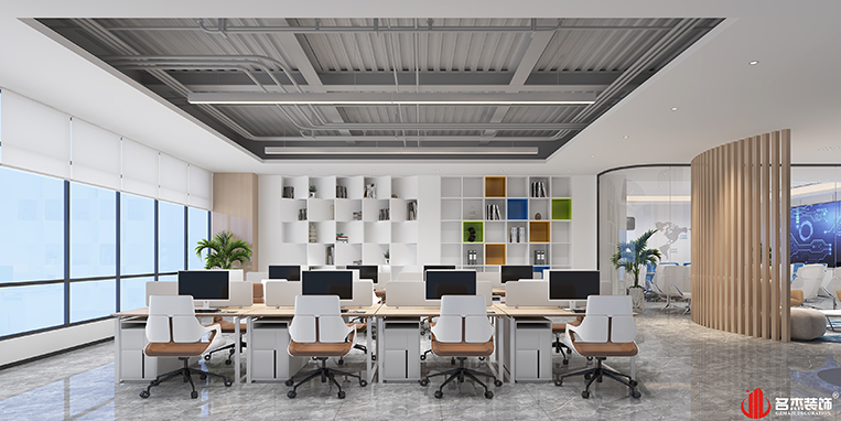 整体风格是按照时尚简约来作为空间的主打风格,加入科技元素作为点缀,让时尚简约的空间变得更具未来感,同时在空间使用企业的logo色,让空间的企业文化氛围感更加深刻,也让空间更具有未来感。在展厅区域使用弧形元素,搭配科技感,在整体设计上形成一个呼应,也突出该企业所在行业的特色,也能够给来访的客户留下深刻的印象。#广州办公室装修设计#
