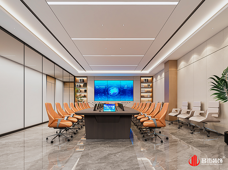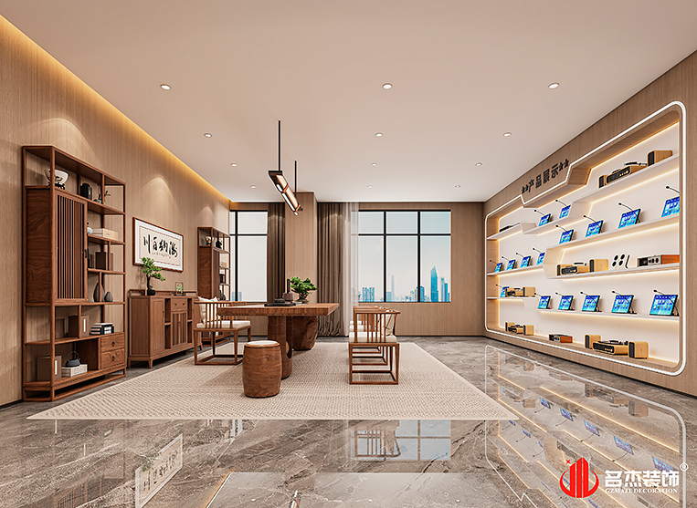 整体装修设计风格是采用时尚简约风格的,同时在不同区域加入不同的设计元素,来让空间看起来更加具有特色。如前台区域,利用圆弧形吊顶搭配大理石背景墙,同时进入展厅区域的入口使用拱门的形式,这样搭配出来的效果是非常好的。而在展厅区域则是采用大圆包小圆的设计手法,让整体呈现效果更加有层次感。#广州办公室装修设计#