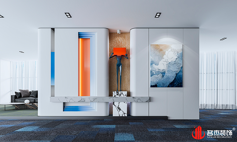 设计团队采用的时尚简约的设计风格作为这次的主打风格,将企业的LOGO——蓝色融入到整体设计当中,企业文化也能够很好地在整个办公室装修设计空间展开,让员工和来访的客户感受到来自企业文化的冲击。天花吊顶上使用撞色的设计,让空间中有着不一样的特色,区别于传统的办公装修设计空间,成就属于他们自己专属的办公室装修设计空间。#广州办公室装修设计#