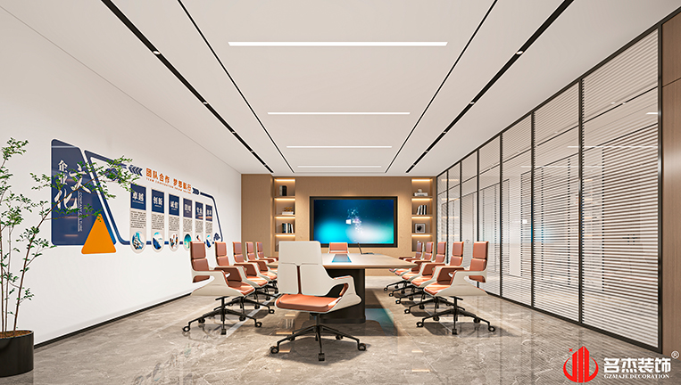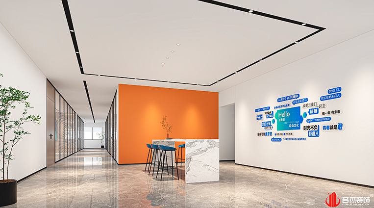 时尚简约风格为这次的主打风格,同时加入活力橙作为空间的点缀色,让其空间与市面流行的办公装修设计空间有着明显的区别?;盍Τ鹊募尤胍材芪占渥⑷敫嗟幕盍υ兀蛊淇占浔涞酶佑腥?。#广州办公室装修设计#