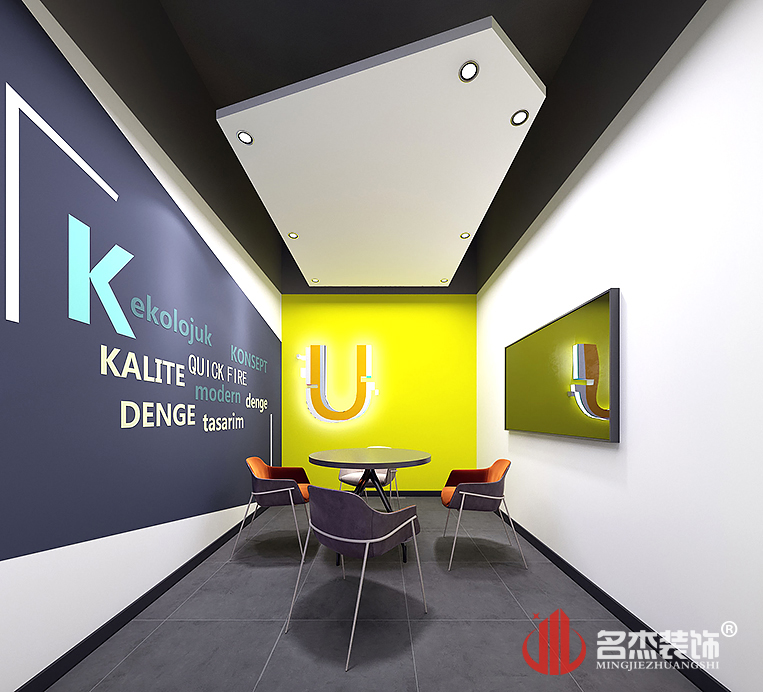 抖音快手短视频公司主要以红黄两个配色作为办公室装修整体的主色调,红色代表红红火火,也表达了对快火短视频的未来期待。洽谈室的一面墙运用了大面积的黄色来作为背景色,在洽谈中也会显得更加有自信。整个空间利用大量的灯光打造明亮的,时尚的氛围。