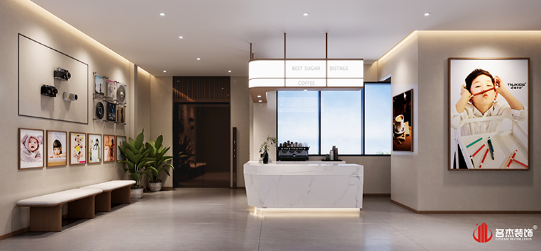 设计团队在前台区域使用比以往更多的圆弧形元素来作为办公室装修设计空间的主打设计要素,来避免孩子们碰伤的可能性,这样的做法也是能够让空间的设计感更加强烈。家具的选择上面也是选择较为百搭的白色和原木色作为主要方向,呼应空间的同时,还能够增加空间的设计层次感。而其他区域则是选择较为常规的做法,通过对材质的选择,打造出不同以往的设计风格。整体空间给人的感觉就是舒适,简约而不简单,同时也能够符合儿童摄影的定位。